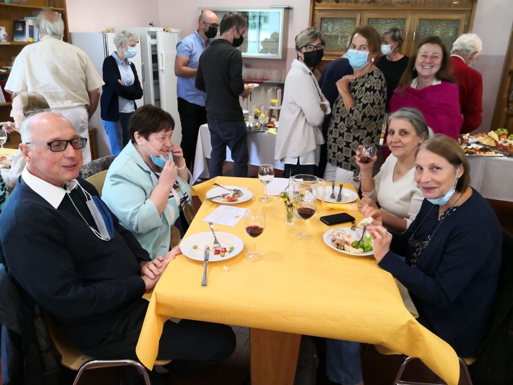 Dopo un bel momento conviviale ed un ricco buffet, alle 15.30 si é aggiunto anche il vescovo, mons. Valerio Lazzeri, per la celebrazione della messa. Nell’omelia si è rivolto alle donne presenti con parole di gratitudine e di riconoscenza, ma anche con un consapevole sguardo al presente, riconoscendo nelle donne una forza ed un lievito per l’intera diocesi. Al momento dell’offertorio è stato portato all’altare anche il prezioso calice consacrato nel 1922 dal vescovo mons. Aurelio Bacciarini e destinato per la celebrazione quotidiana nell’erigeda basilica del Sacro Cuore di Lugano, dove si trova tutt’ora. Era stato acquistato attraverso una sottoscrizione di 5 centesimi per socia, che coinvolgendo 15 mila offerenti, arrivò a raccogliere 750 franchi. Il calice, da allora, accompagna tutte le ricorrenze e i momenti significativi dell’UFCT, e pertanto non poteva mancarne neppure domenica.