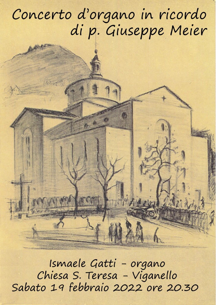 Sabato 19 febbraio 2022 ricorrono i 10 anni dalla morte di padre Giuseppe Meier (19 febbraio 2012), redentorista, attivo per decenni nella parrocchia di S. Teresa a Viganello. Per l’occasione è in programma un concerto organistico, tenuto dal maestro Ismaele Gatti, in ricordo di un ‘pastore’ che tanto si è speso per la liturgia e la musica nella parrocchia di Viganello, oltre ad essere stato il promotore della costruzione dell’organo della chiesa nel 1972.