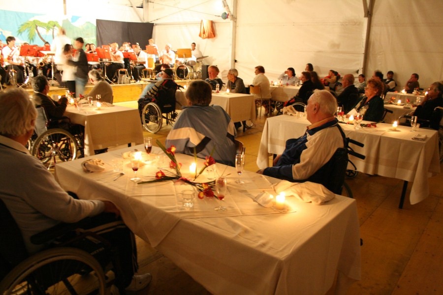 Svegli di buon mattino, mentre alcuni aiutano gli ospiti a prepararsi, altri si attivano a preparare la colazione. La mattinata scorre fra Santa Messa, per chi desidera, ginnastica e attività varie, mentre mani esperte riassettano le camere e in cucina fervono i preparativi per il pranzo. Dopo pranzo momento di siesta e riposo per i volontari come per gli ospiti. Dopo le 15 ci si ritrova per l’attività in comune. Durante tutto l’anno alcuni volontari si sono attivati per preparare delle attività. Dopo cena eccoci in un villaggio turistico in piena regola: teatro, musica, spettacoli e via di seguito tutto ciò che fa vita! In seguito si aiuta per l’allettamento e poi... è tempo di amicizia per i volontari! Alla 01 il coprifuoco! Tutti a dormire!