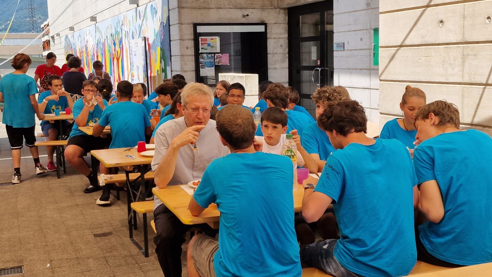 Circa una quarantina gli animatori che a Gordola si impegnano ogni giorno a prestare questo servizio così importante e di grande responsabilità: con loro il vescovo Alain ha condiviso il momento del pranzo.