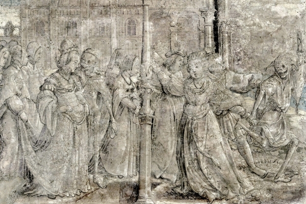 La morte da allora si fa compagna di viaggio, secondo questa interpretazione, della vita di tutti ed essa è raffigurata, nei diversi pannelli, a «danzare» con ogni uomo, papa, imperatore, vescovo, nobile, mercante, contadino, anziano o bambino che sia. In questi artefatti c’è insieme un forte senso simbolico accompagnato anche da un tratto satirico che non va perso mai di vista. Nella tradizione di questi cicli pittorici che sono presenti in forme diverse nell’iconografia medievale, all’apparente vittoria della morte che comunque non intimorisce il cuore dei virtuosi, succede il giudizio di Dio.