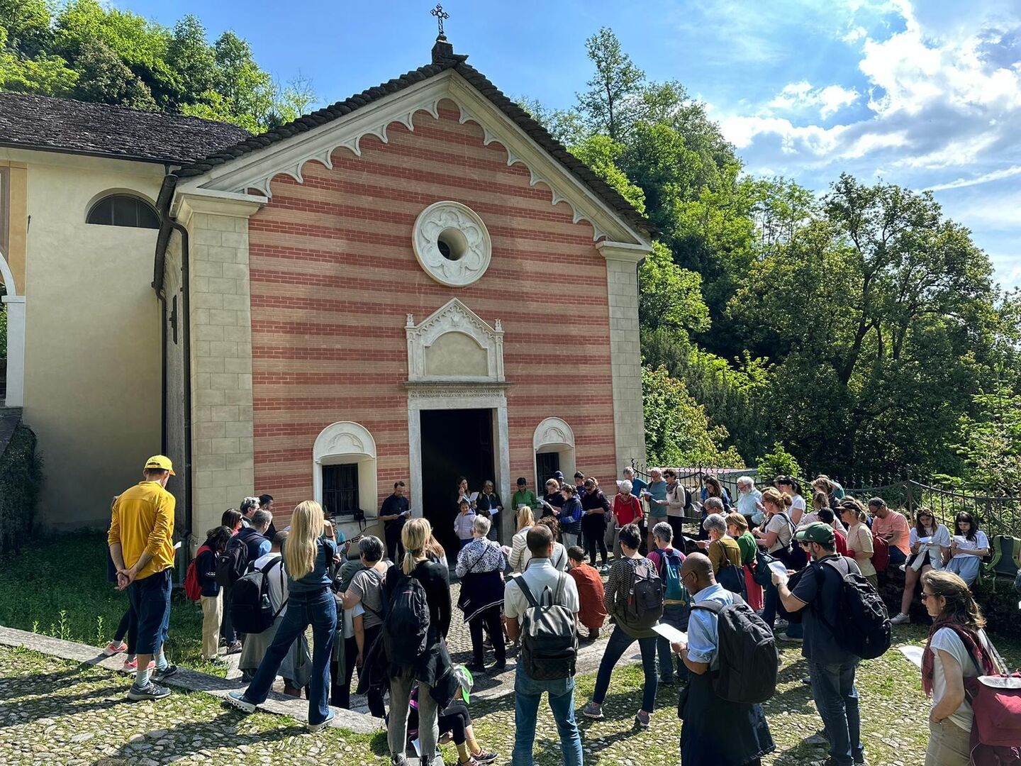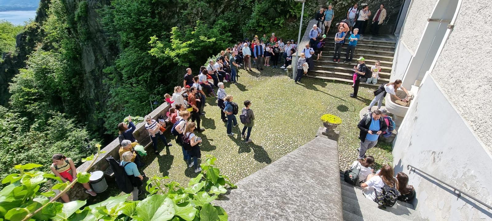 "Buona parte della comitiva si è recata a Locarno con il treno, mentre le famiglie salite in automobile ci hanno raggiunto alla Chiesa dell’Annunciata. Abbiamo quindi percorso assieme la cosiddetta via del Sacro Monte, le cui cappelle accolgono statue a grandezza naturale che ripropongono episodi importanti della vita di Gesù e della Vergine. Ci siamo soffermati in canto e in breve preghiera anche davanti alla cappella della Visitazione, che ricorda appunto la visita di Maria a sua cugina Elisabetta, una bella immagine di condivisione fra due donne. Il tragitto, breve e ripido, è suggestivo e tutti l’hanno percorso con piacere.