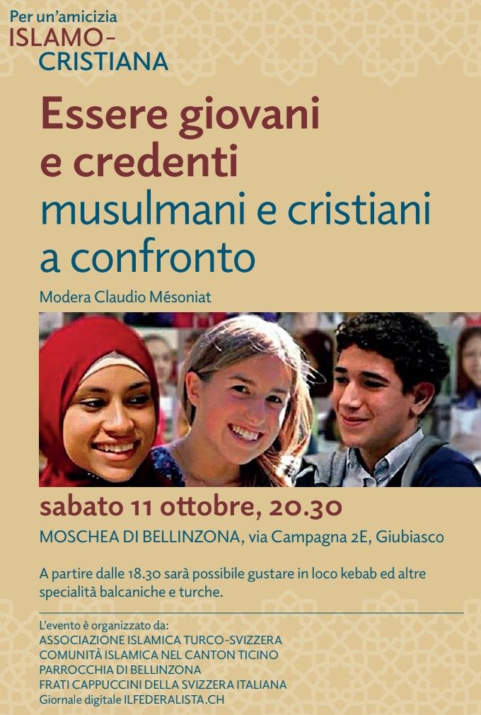 Il nuovo centro islamico sarà anche spazio di dialogo interreligioso. Sabato 11 ottobre, infatti, la Moschea accoglierà un incontro tra giovani musulmani e cristiani, moderato dal giornalista Claudio Mésoniat. La serata sarà preceduta, dalle 18.30, da una degustazione di specialità balcaniche e turche, seguita alle 20.30 dal dibattito sui cammini di fede e sull’essere credenti in una società secolarizzata.