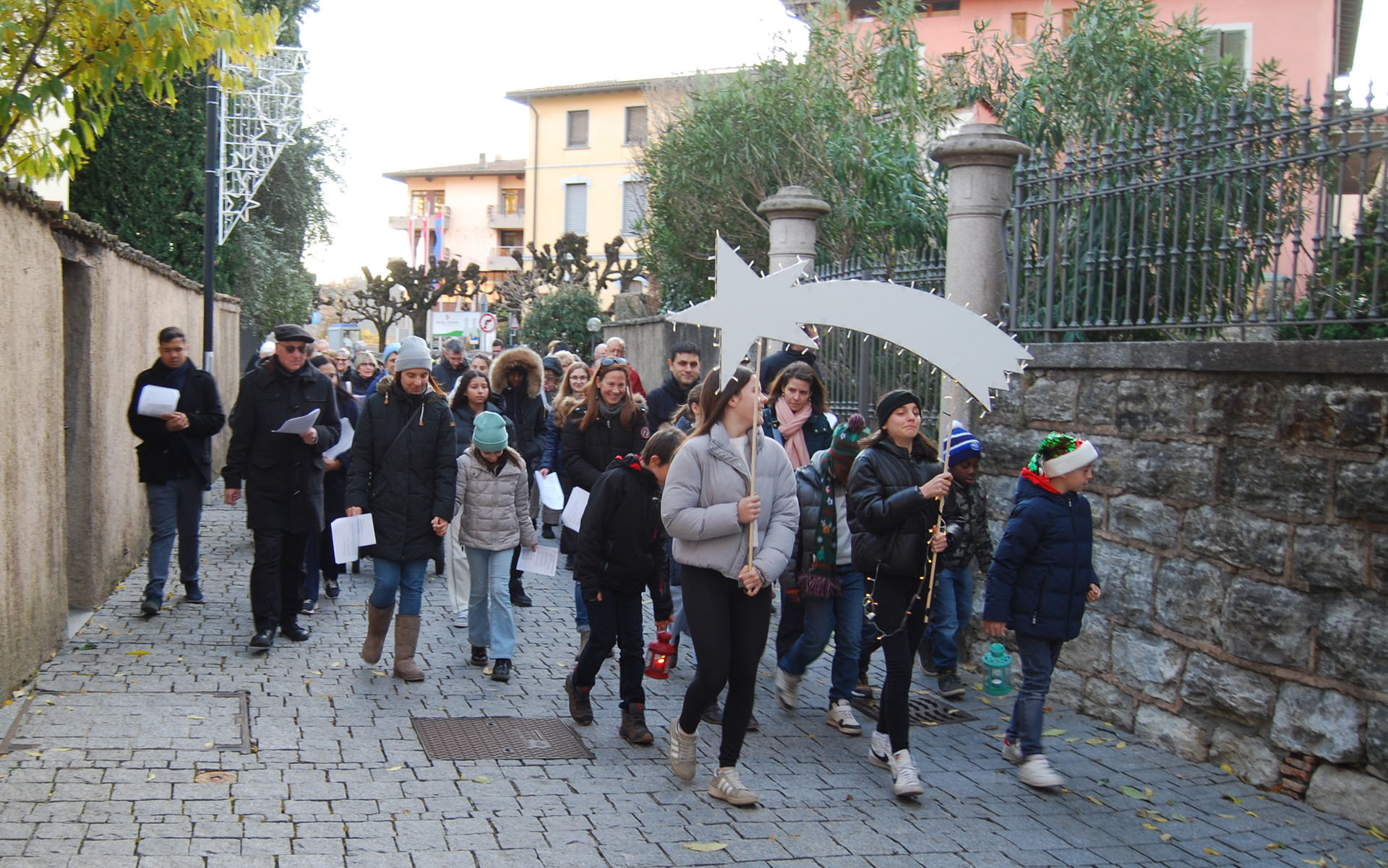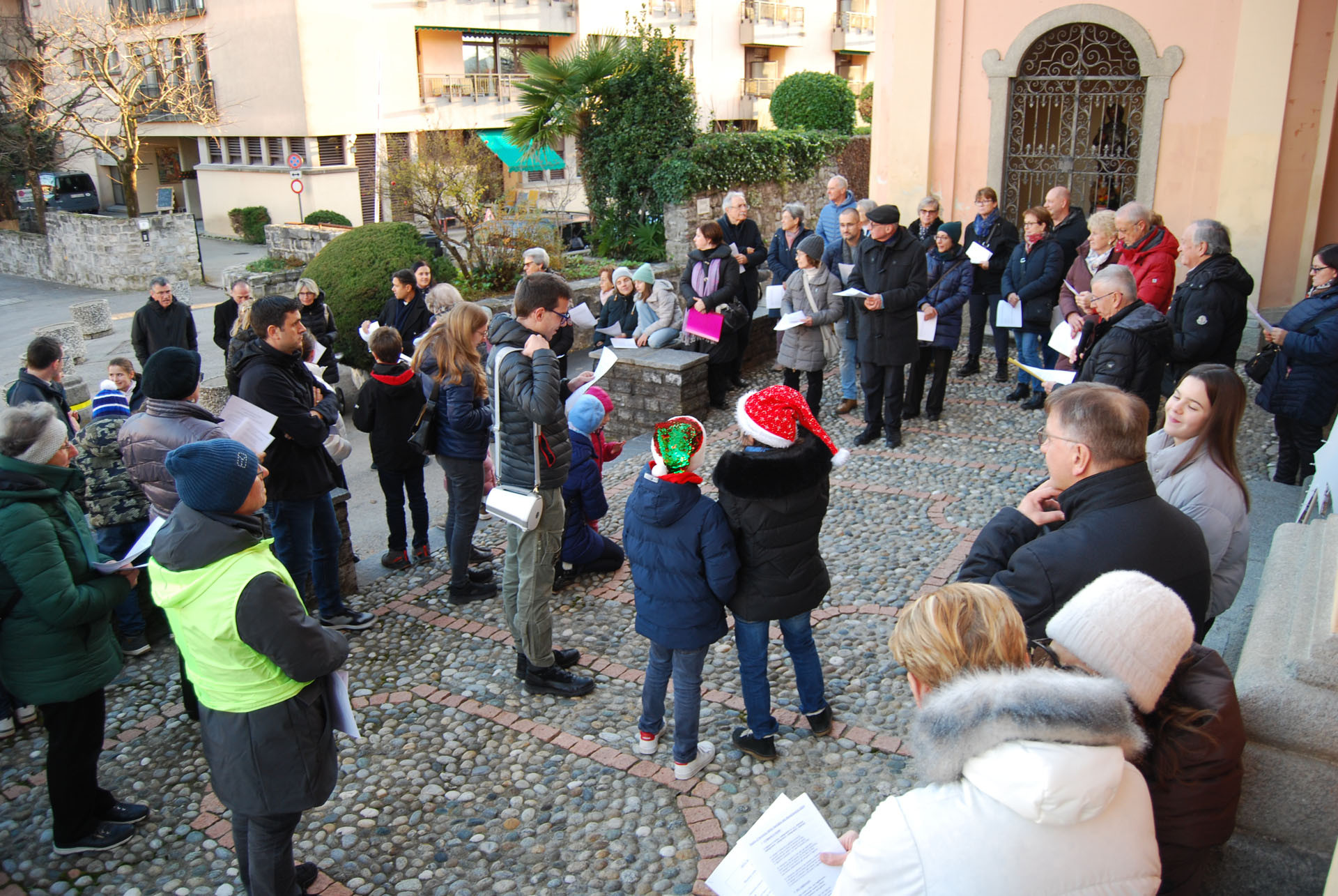 Molto ben riuscita e partecipata la Veglia d'Avvento organizzata dal Vicariato del Mendrisiotto domenica scorsa, 15 dicembre, a Morbio Inferiore. Il centinaio di persone, tra grandi e piccoli, hanno fatto un percorso a partire dal sagrato della chiesa di S. Rocco, con soste di preghiera-riflessione-canti nel nucleo del paese (compresa la tappa davanti alla moderna cappella di S. Teresina di Gesù Bambino) fino alla chiesa di S. Giorgio, dove si è potuto ammirare, in una grotta, la suggestiva rappresentazione vivente della Natività. Il tema conduttore è stato quello del prossimo Giubileo: "Pellegrini di speranza". Arrivati poi davanti alla facciata di S. Giorgio, si è spalancata la porta infiorata e la suddetta Natività vivente, rappresentata da due ragazzi con un neonato, aveva come sfondo il bellissimo affresco cinquecentesco del Natale, che riempie l'intera abside della chiesa romanica (v. foto). Un momento conviviale con bevande calde ha concluso il bell'incontro.